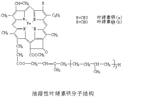 该产品是以富含叶绿素的天然植物为原料,经过萃取、皂化、上铁得到的叶绿素衍生物。