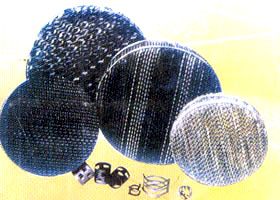 | 填料型號 | 材質 | 理論塔板no/m | 峰高h mm | 空隙率% | 比表面積m2/m2 | 壓力降mmhg/m | f因子m/s kg/m2 |